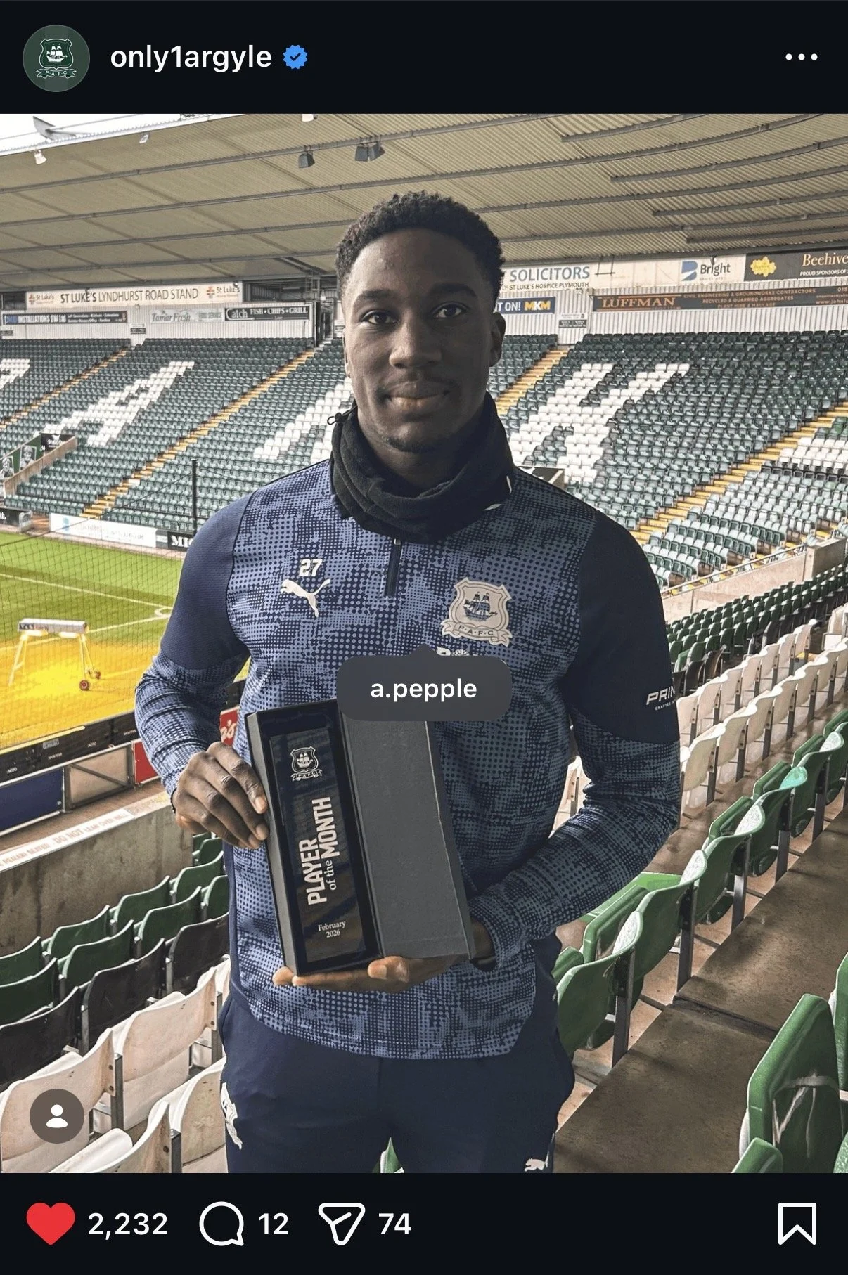 🏆 Pepple wins Plymouth Player of the Month 🏆